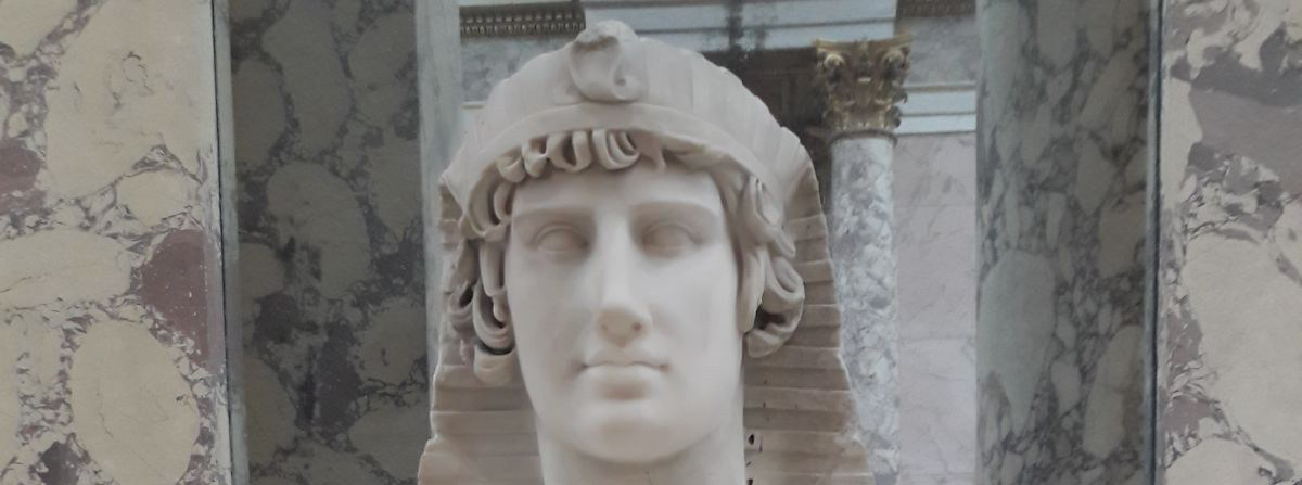 Yet Rome was intoxicated with Egypt. The emperor Hadrian’s villa at Tivoli is full of Egyptian style items. His partner, Antinous, lost his life in Egypt. Hadrian turned him into a god. This may link to Hadrian’s interest in Egypt. Antinous is also the poster boy for the show. The classical bust of him in the Egyptian wig an image of two world.