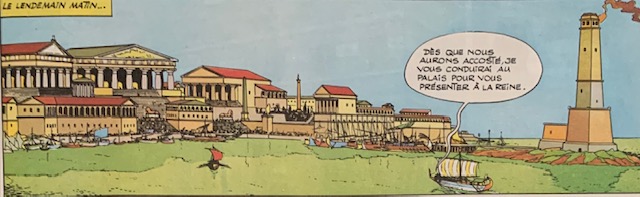 The Egypt of Asterix is a combination of classical and Egyptian. Alexandria is portrayed as a classical city with Greek temples, columns and colonnades.