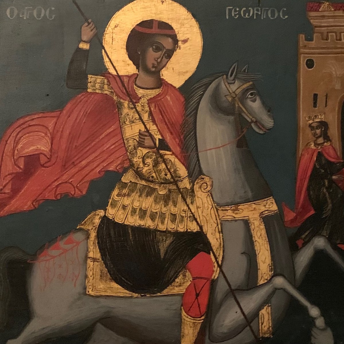 I think St. George is an apocryphal Christian figure based on the cult of the Thracian Horseman.