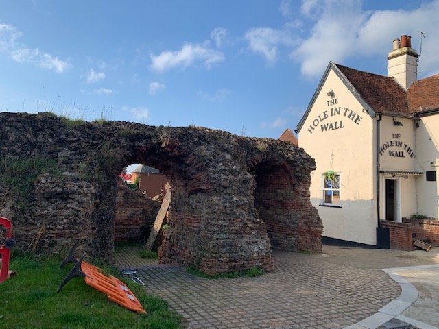 Careful examination of the outer face of the Castle in the 80s identified a row of vertical ‘bricks’ which turned out to be carefully sheared hypocaust shards. The number of them suggest they were taken from a large public bath house.