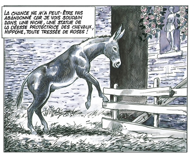 Neither graphic novel features Isis, but it is interesting that both feature a scene in the stables with a small statue of a horse goddess: the Celtic Epona in The Witches of Thessaly and Hippone in The Golden Ass.