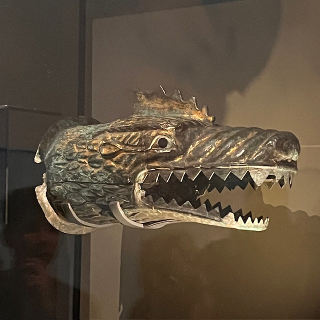 The objects on display include the world’s only intact legionary shield excavated from Dura-Europos (in modern day Syria). Currently held by Yale University and on loan to the British Museum for the exhibition. A gorgeous deep red curved shield decorated with eagles and a lion. It is a beautiful object, displayed here almost like a painting, but it packed a punch. Literally. The central metal boss could be used as an offensive weapon. Roman shields could also be used to create the famous testudo or tortoise. The juxtaposition of beauty and brutality emphasizes the contradictions at the heart of the Roman Empire and our enjoyment of it today.