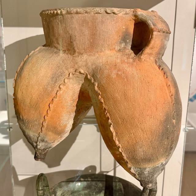 In her glazed stoneware work, she explores the figure in different poses. The figure recalls the clitoris. “It’s a symbol of the female”, she writes. “It’s a source of pleasure; it has no other function. It’s hidden, most of the organ is internal with only a tiny bit external. It’s still a mystery to men, and it was only fully studied for the first time in 1998. It has a great shape reminiscent of many ancient objects – Egyptian goddess artifacts, Chinese garlic-head and Chinese goose-headed vessels.”